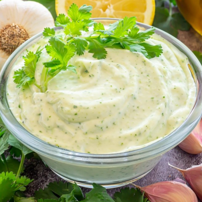 6 tequeños crujientes rellenos de queso acompañados de un copa de salsa de ajo para untar y diisfrutar