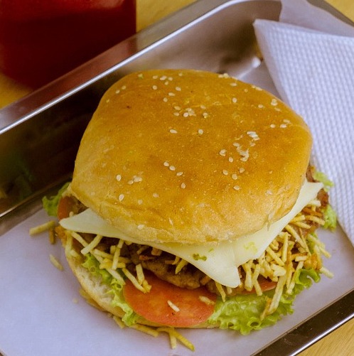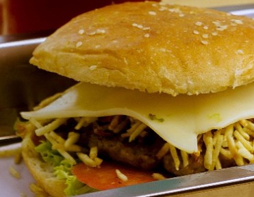 125 g De carne de res con verduras (lechuga, tomate, cebolla) y queso.