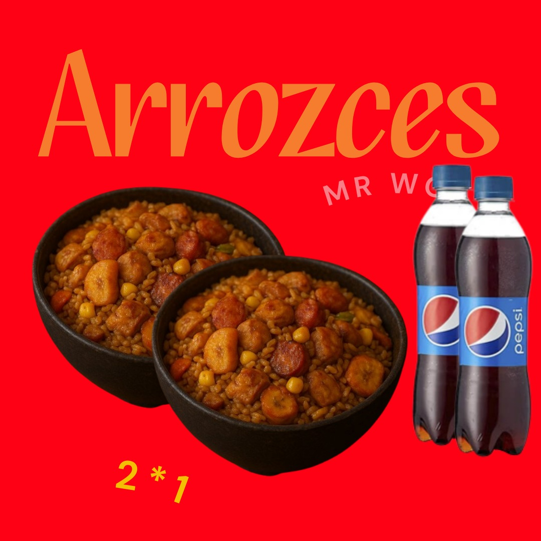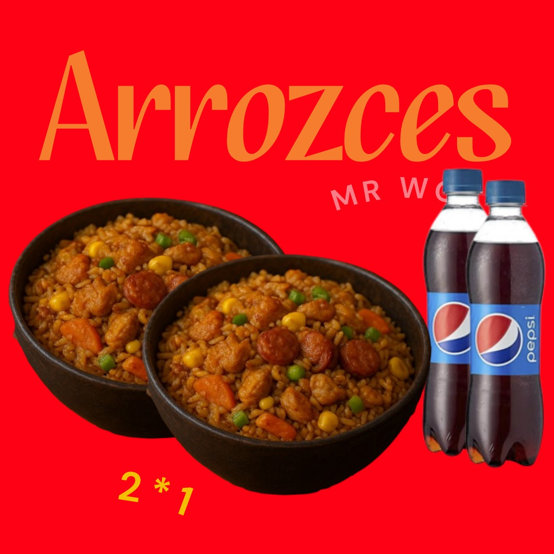 2 Arroces atollados y 2 bebidas Postobón 250 ml.