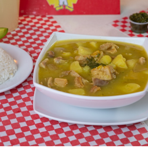Ajiaco Especial, 1/4 de pollo, porción de arroz, aguacate, papa salada y gaseosa 250 ml a elección.