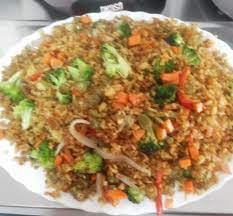 Arroz al mejor estilo paisa con brócoli, apio, maíz tierno, cebolla, pimentón y plátano.