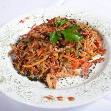 (Arroz, pimenton, zanahoria, zuccini amarillo, raices chinas, lomo, salchicha, pollo, jamon.