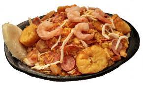 Arroz al mejor estilo paisa con Pollo, Lomo de cerdo, Chicharrón, Camarón, Salchicha, Chorizo, Plátano y Maíz tierno.