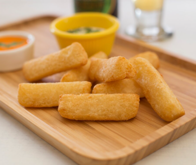 Papas a la francesa, salchicha alemana, pollo, carne, costillas BBQ, chicharrón, maíz dulce, maduro y queso.