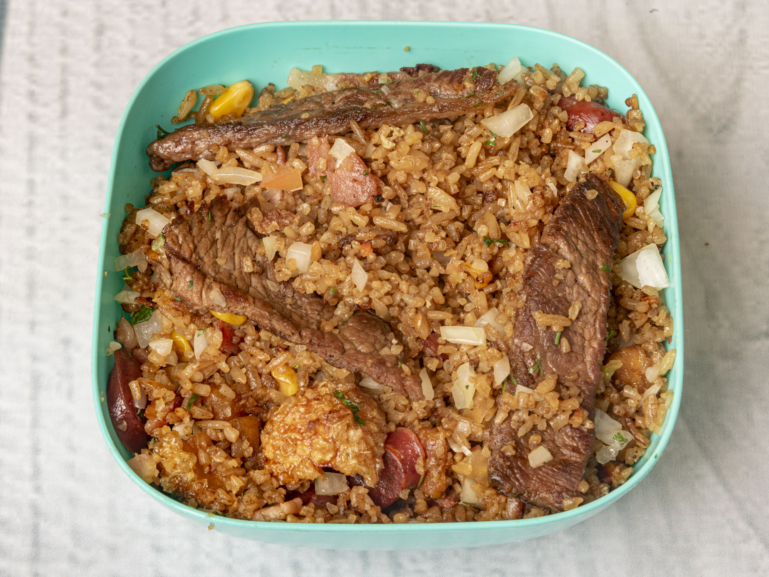 Arroz Trio 2-3 personas (250 gramos )contiene pollo en trozos cerdo chorizo chicharron y maduro salsa de la casa . Perfecto para compartir en familia, ¡Selecciona la receta de la casa que mas te guste!( Súper Colombiano Mexicano Colombiano) salsa de tomate , bbq