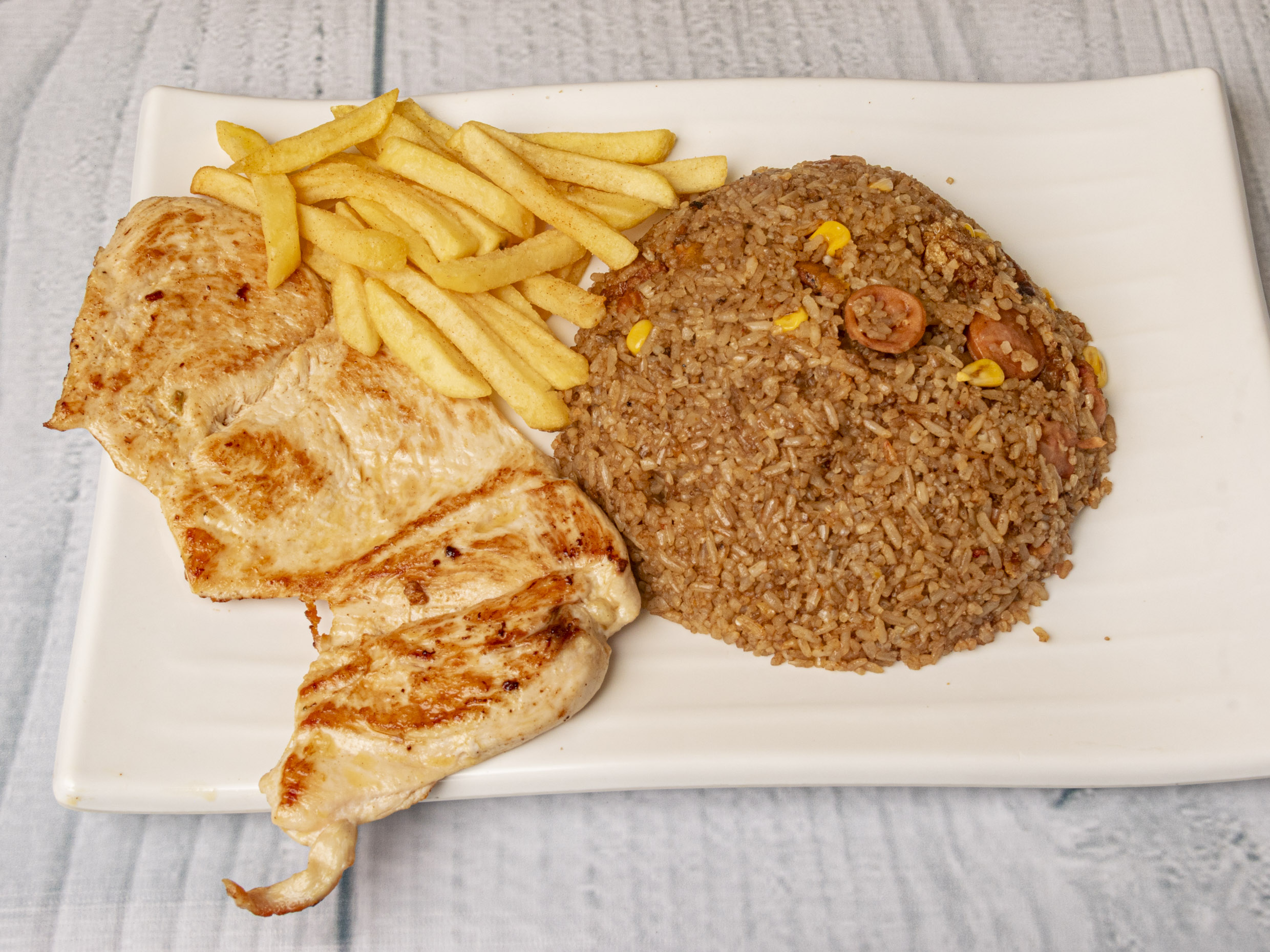 Porcion de Arroz Paisa + Papas a la Francesa + Gaseosa Postobón 250 ml + Pechuga