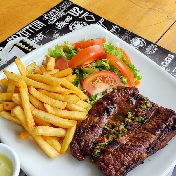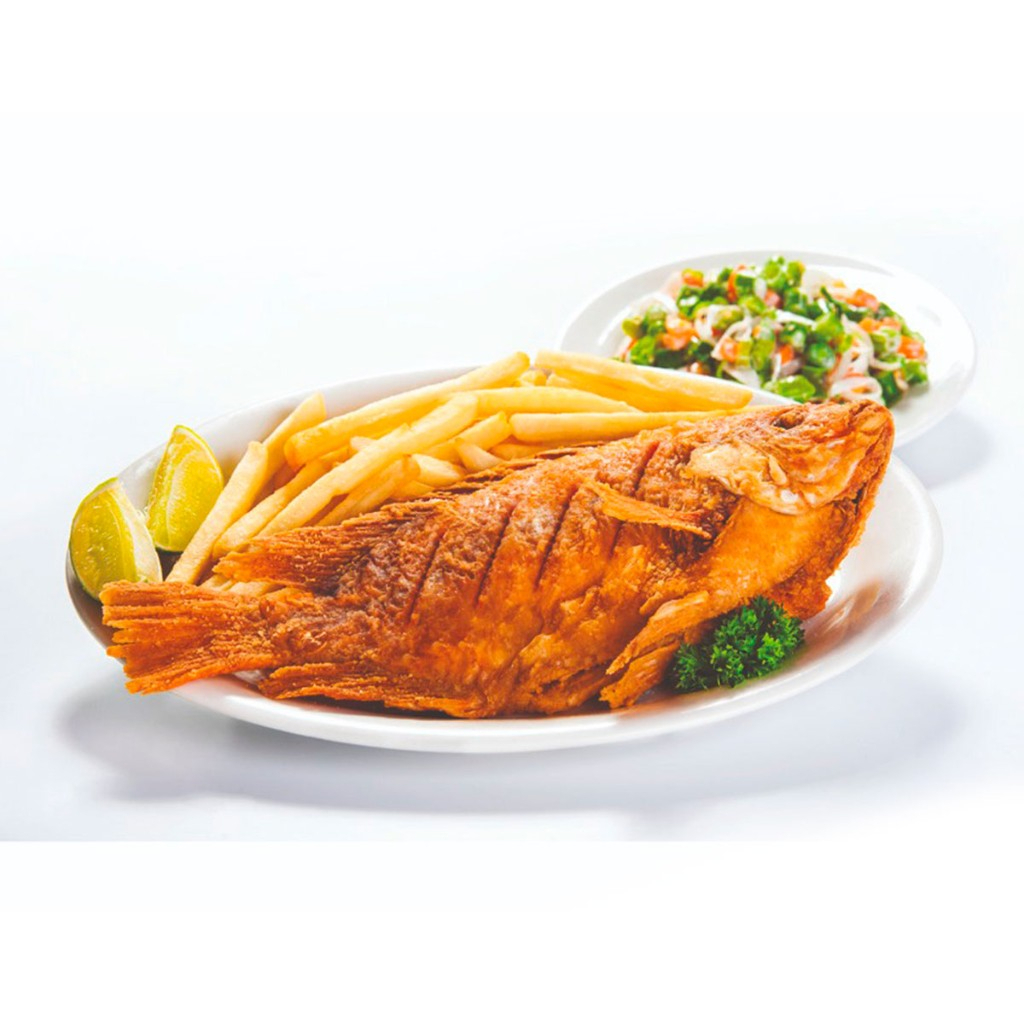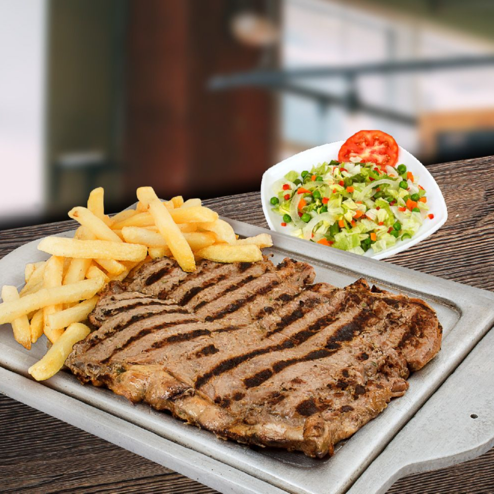 Acompañado de papa francesa, patacón o plátano y ensalada.
