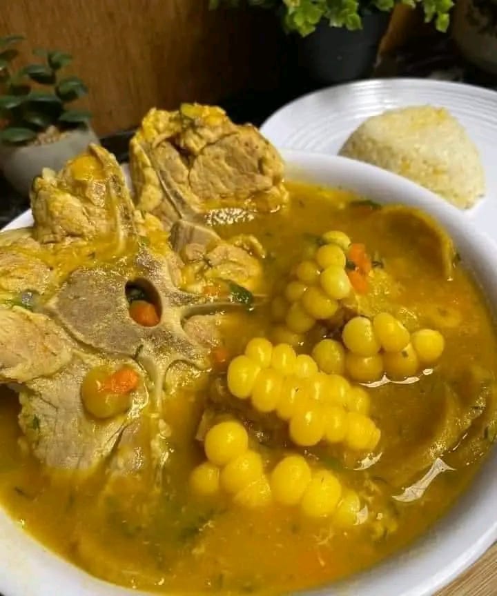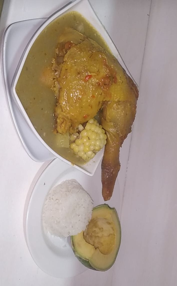 Acompañado de papa salada, plátano, yuca y ensalada.