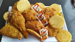 1 Pollo Broaster acompañado de papa francesa, arepa, yuca frita y salsas
