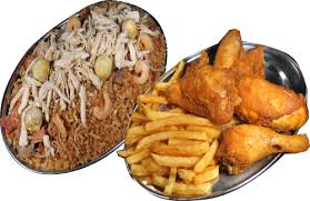 Arroz Chino con verduras salteados al wok con carnes picadas acompañado de 1/4 Pollo Asado o Costillas BBQ, Papas a la Francesa