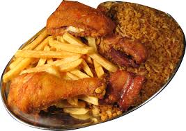 Arroz, ensalada, papa a la francesa, yuca y patacon