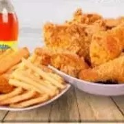 1 Pollo broaster acompañado de papas a la francesa, 1 porción de yuca, 1 porción de arepa y 1 gaseosa Coca-Cola1 litro.