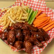 24 piezas de alitas en salsa BBQ acompañada de papas a la francesa.