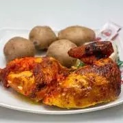 Medio Pollo asado, Acompañado de papa salada, Arepa y Coca-Cola 1Lt