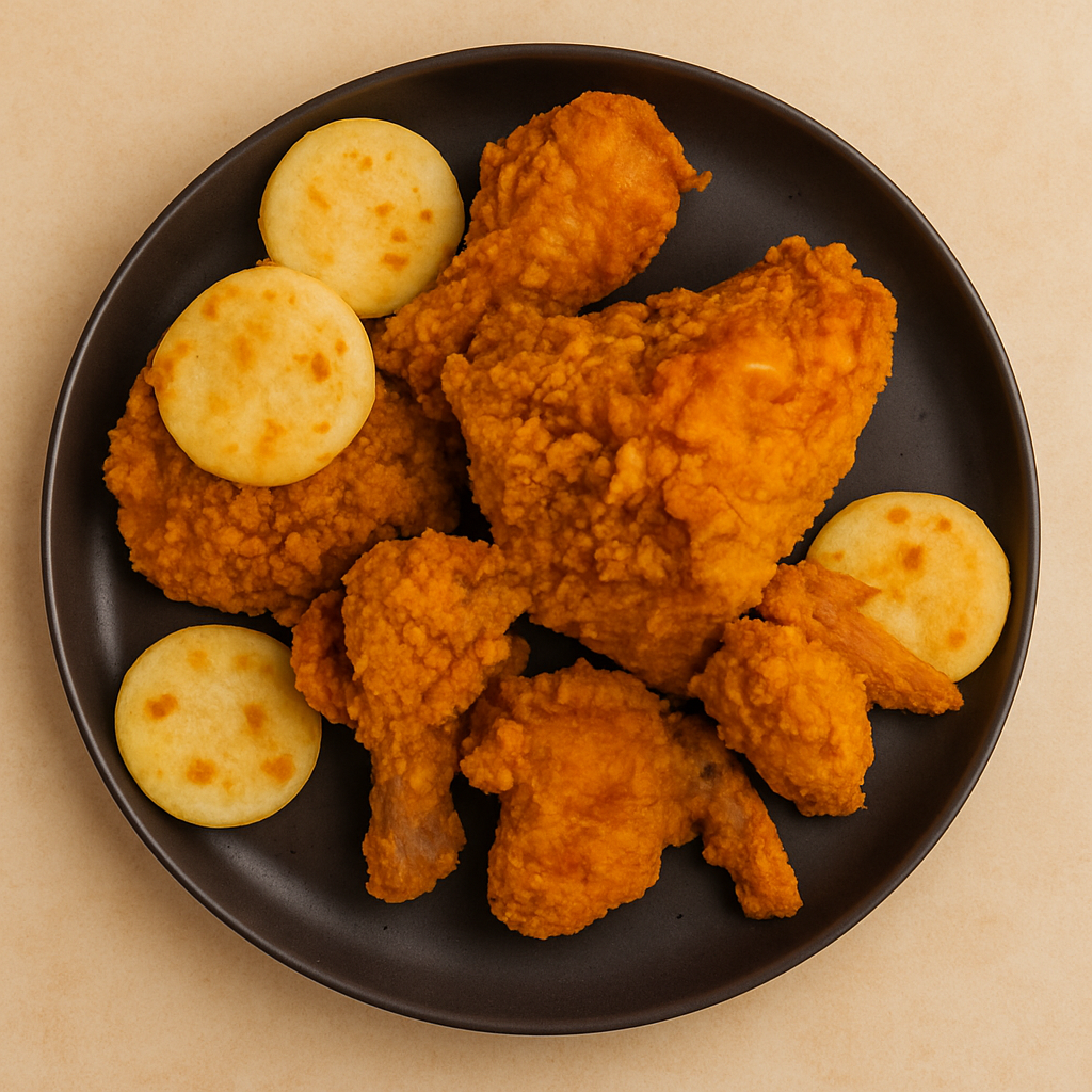 1 Pollo Broaster acompañado de 4 arepas, 1 plátano maduro y 1 Gaseosa 1L.