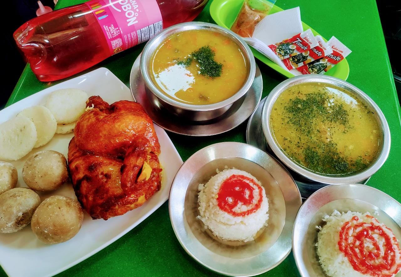 Porción Arroz*2 + Medio Pollo Asado*1 + Sopa del Día*2 + Bebida*1