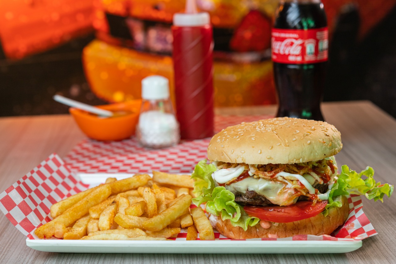 Acompañada con papas a la francesa y gaseosa.