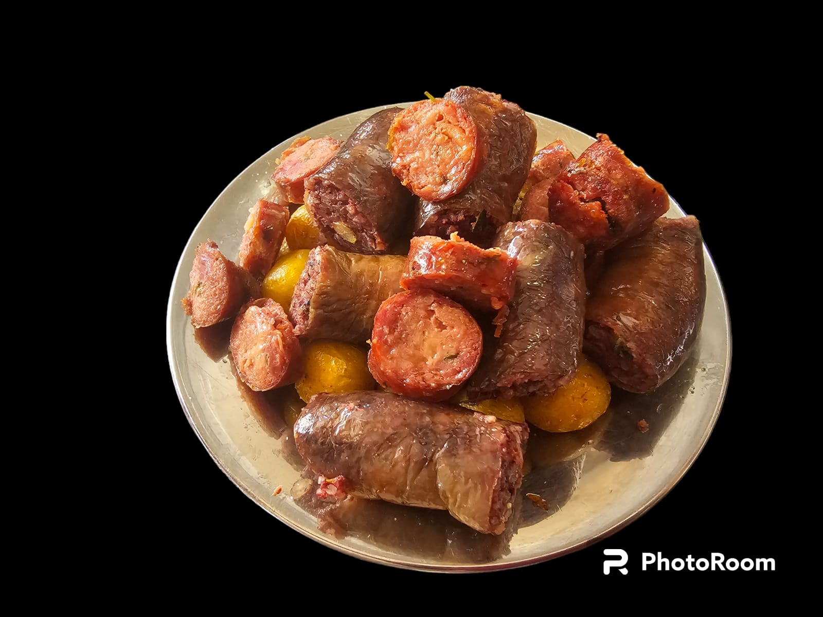 Porción de longaniza, acompañada de papa.