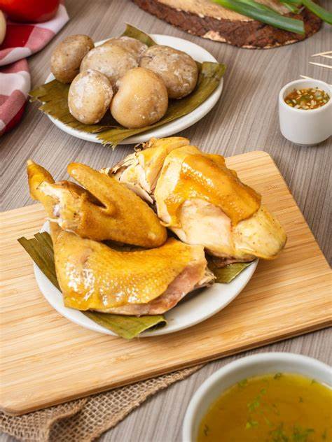 Familiar, recomendada para 6 personas, Media Gallina, carne mixta o a elección (450 gramos aprox), rellena, longaniza, papa criolla, salada, yuca y plátano