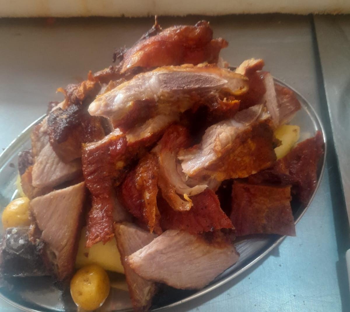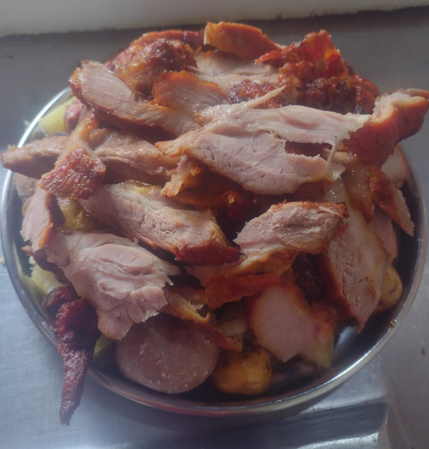 Porción de carne (Cerdo, chigüiro, costilla o mixta), Aprox 300 gr de carne - acompañada de papa, yuca y platano