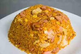 Arroz Chino de la Casa personal (200 gramos)camaron + tocineta + pollo + cerdo + res ( 200 gramos )+jamon + 1 huevo de codorniz + papa a la francesa+ 1 lumpia .+ salsa de tomate y agridulce