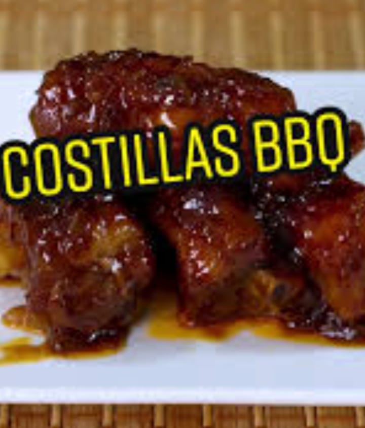 Costillitas BBQ 400 g arroz, yuca, francesa, ensalada.