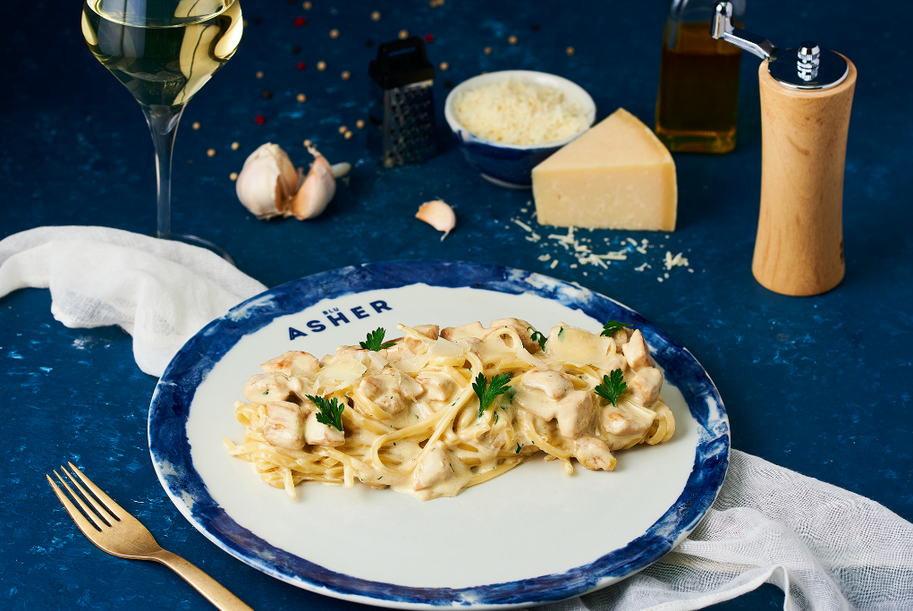 Preparado con salvia, pollo braseado, crema, pasta y terminado con parmesano reggiano.