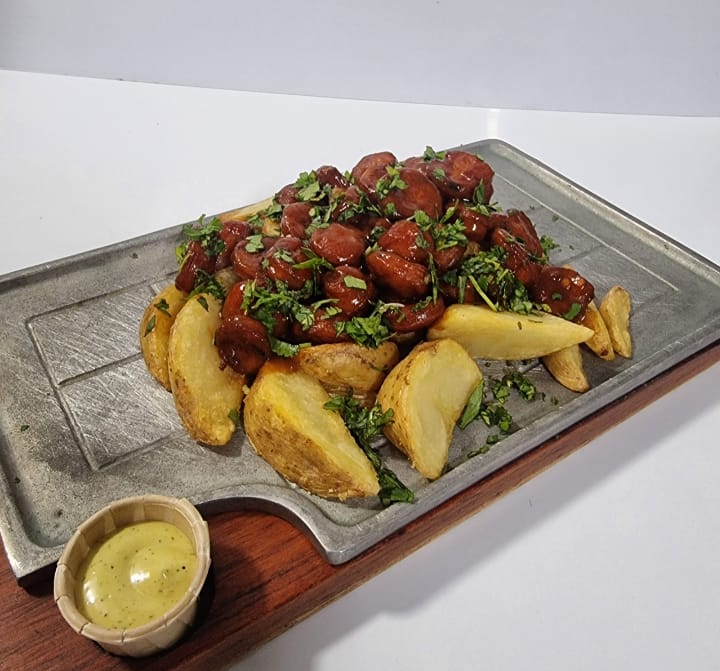 Papa En Cascos y Chorizo