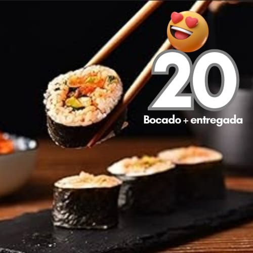 10 : bocados de sushi acompañado con queso crema, aguacate, palimito con topping de ajonjoli. .