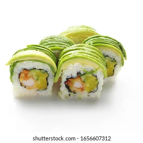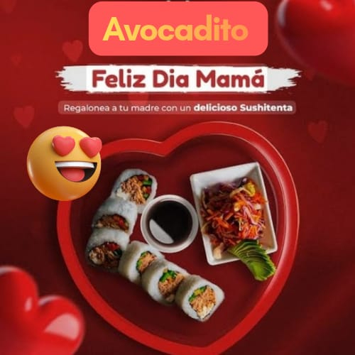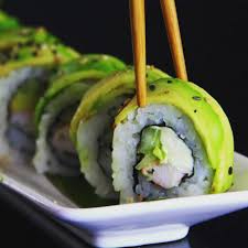 10 :BOCADOS DE SUSHI relleno de, palmito de cangrejo, queso crema, aguacate, con topping de ajonjoli y aaguacate.