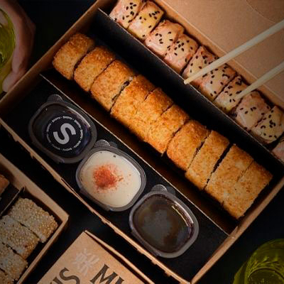 Philadelphia Roll*1 + Umi Roll*1 + Salmon Skin*1 + Spring Rolls*1 + Aros de Cebolla Tempura*1 + 2 Niguiris*1 + 2 Palmito*1 + Galletas Apanadas*1 + COCA-COLA 1.5 Ml*1