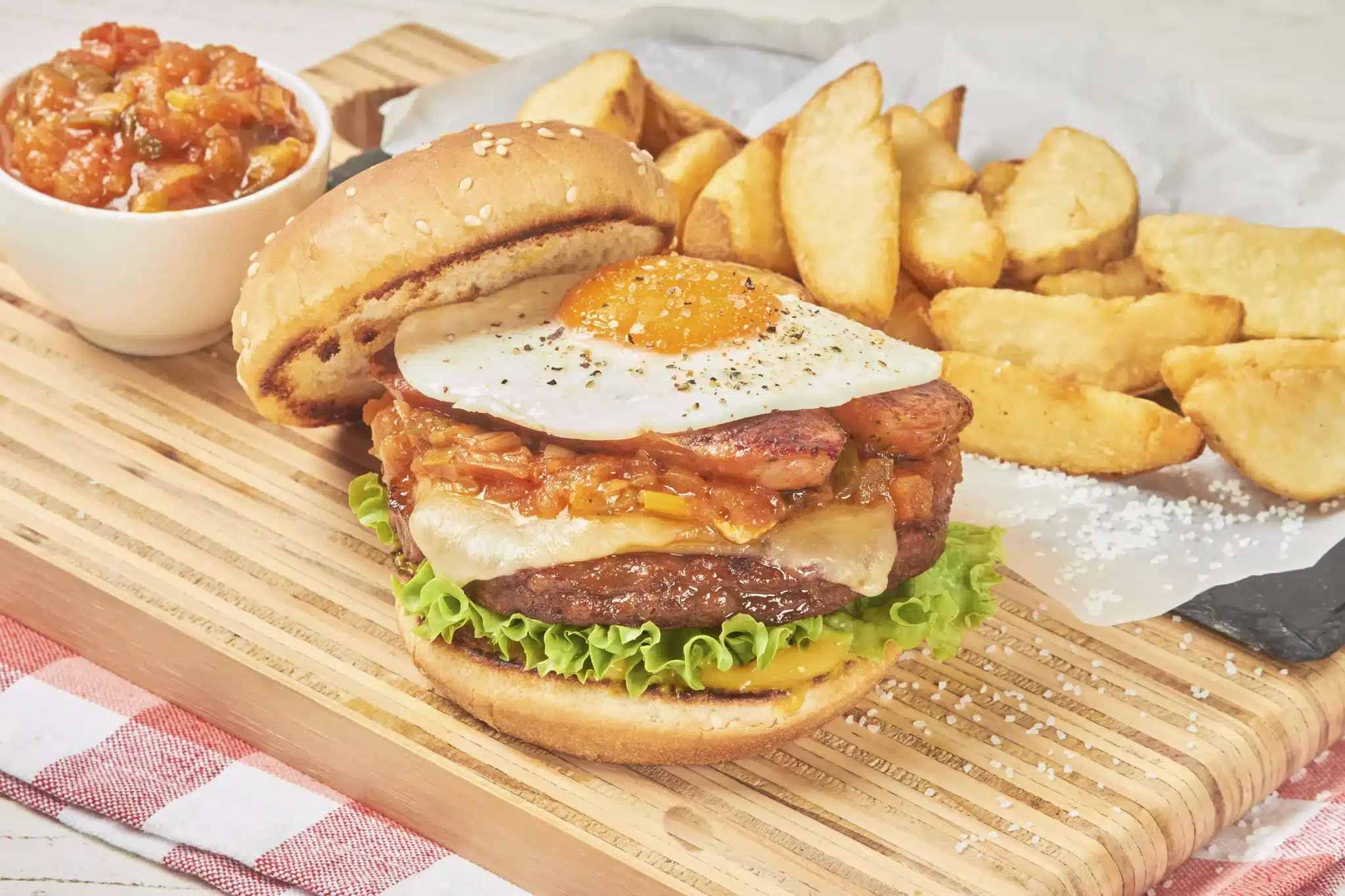 Una bomba criolla con sabor local: carne de res 100% artesanal, queso doble crema derretido, pan brioche suavecito, una cama de guacamole cremoso, huevo frito con yema jugosa, cebolla y lechuga fresca. 💥 Bogotana, brutal y hecha pa’ romper el hambre a lo bien.