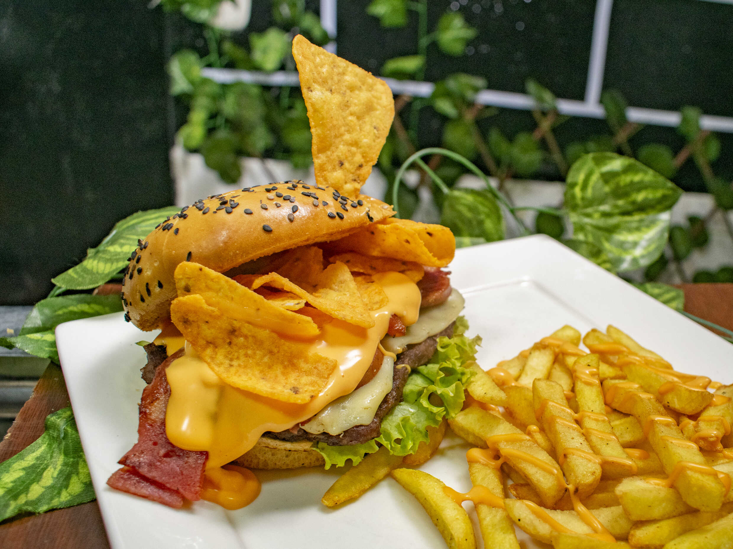 La burger que hace crack en cada mordisco: pan brioche suave, carne de res artesanal, vegetales frescos, queso mozzarella fundido, una tira de tocineta y un montón de Doritos crocantes que le meten todo el flow callejero y atrevido. 💥 Cremosa, crujiente y brutal. Esta no se mastica… se destruye.