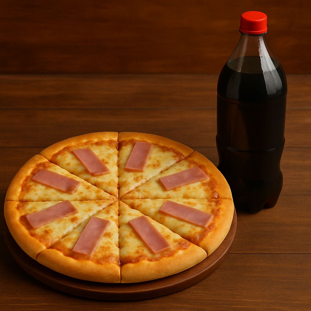 Pizza de 8 porciones + gaseosa litron sabor a disponibilidad (Foto Referencia)