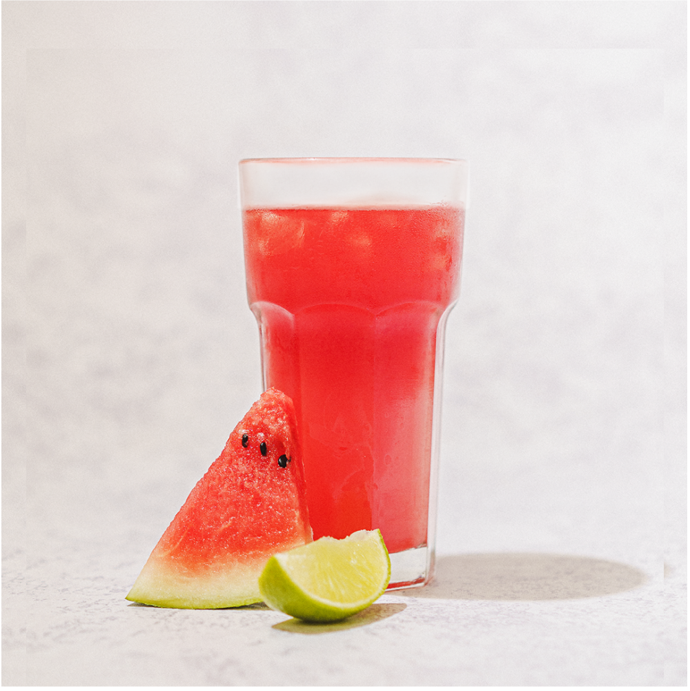 Bebida refrescante de patilla, jengibre, hierbabuena y limón.