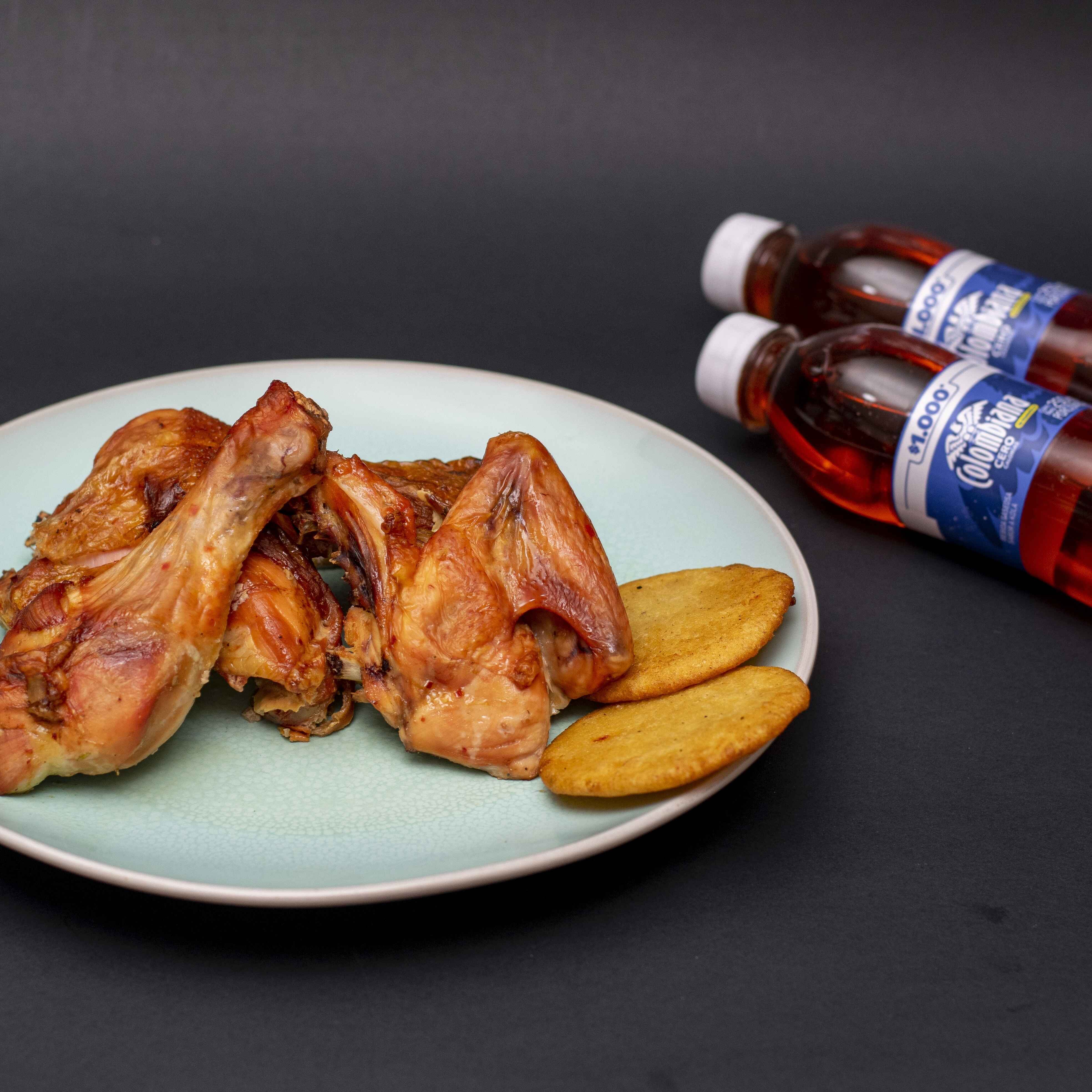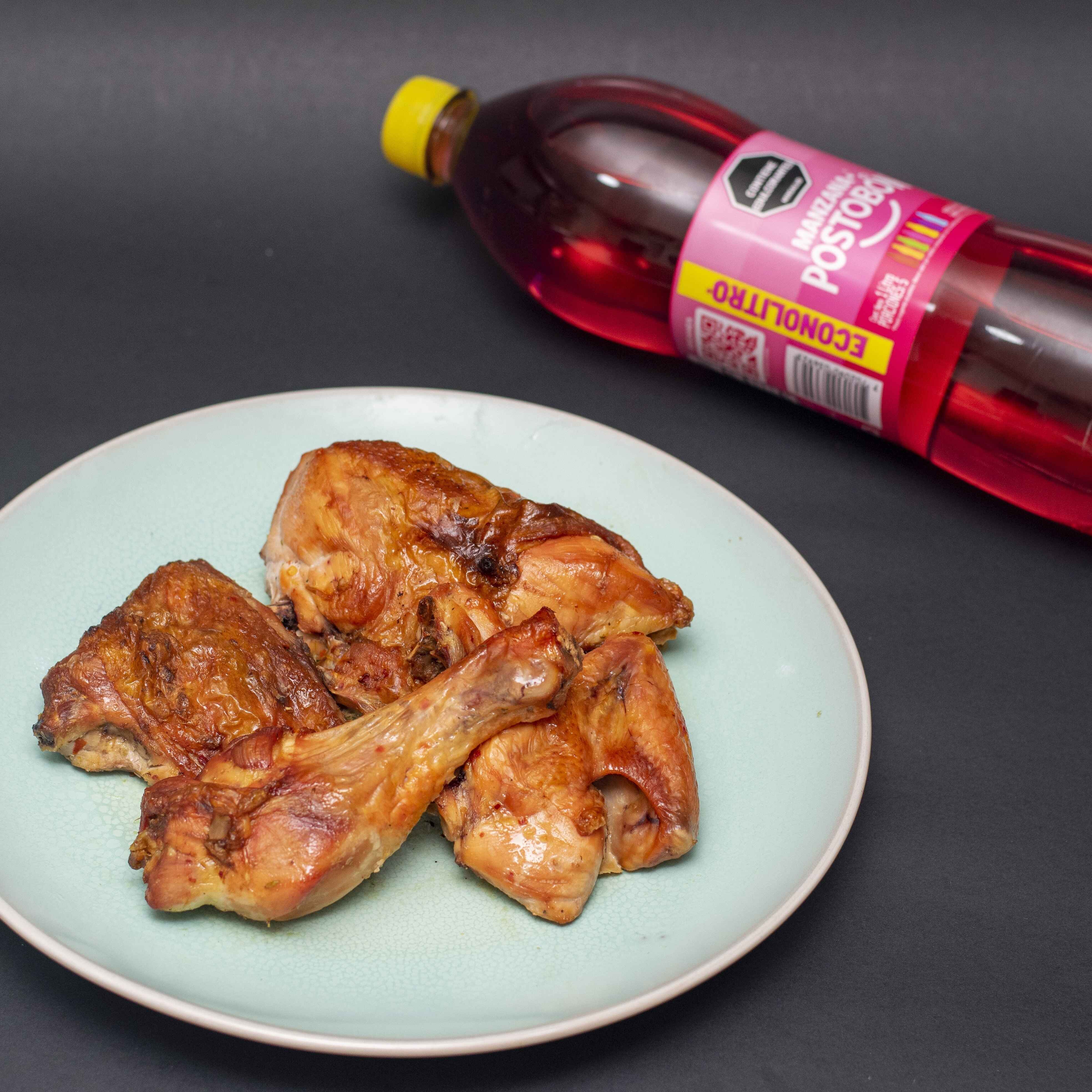 Medio pollo con gaseosa 1 L (sabor sujeto a disponibilidad de la tienda).