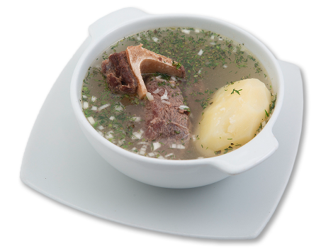 Caldo de costilla con papa y pan