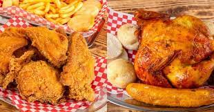 Un cuarto de pollo asado y un cuarto de Pollo Broaster Acompañado de un litro de Jugo Hit