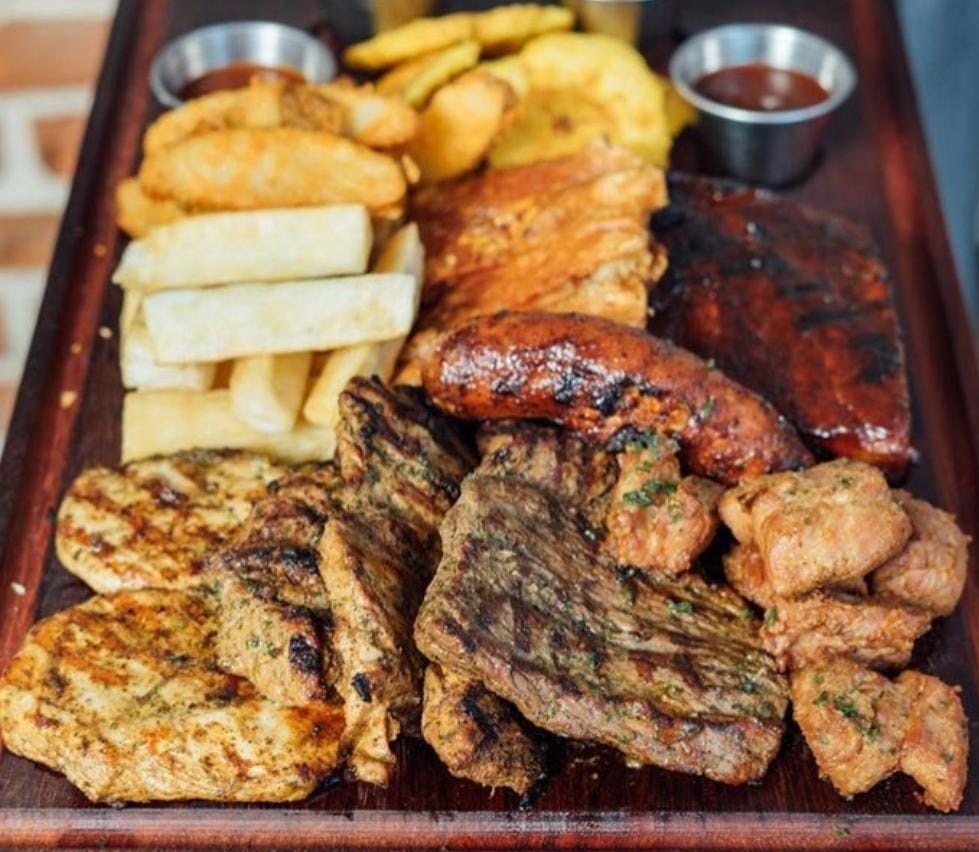 35 gramos, con carne de res, cerdo pollo chorizo y costillitas acompañada de Francesa yuca patacon ensalada