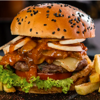 Deliciosa hamburguesa con carne 100% de res, acompañada de vegetales frescos (lechuga tomate, cebolla), huevo, pollo, tocineta, maíz tierno, queso mozzarella, papa chip y salsas a elección.