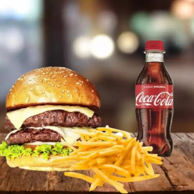 200 grms de carne de res premium, tocineta, queso vegetales frescos pan artesanal y salsa de la casa. Acompañada de gaseosa 250 ml y papas.