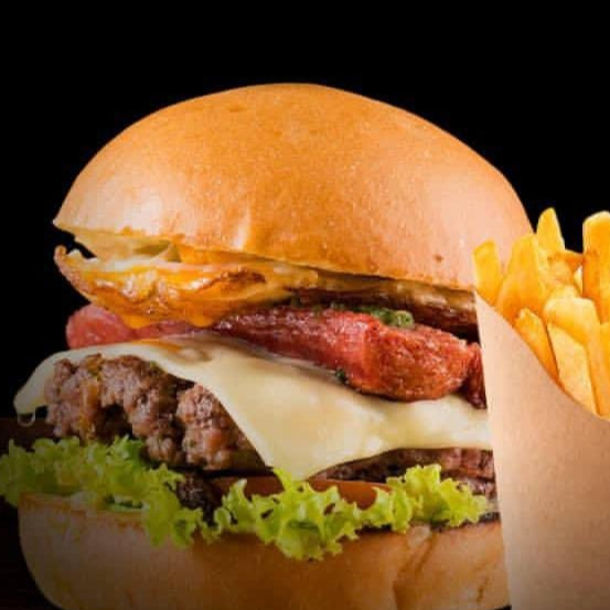 Hamburguesa con doble carne de res 200 g, tocineta, queso doble crema, vegetales frescos, papas y gaseosa 250 ml, elige tu sabor favorito Pepsi, Colombiana, manzana.
