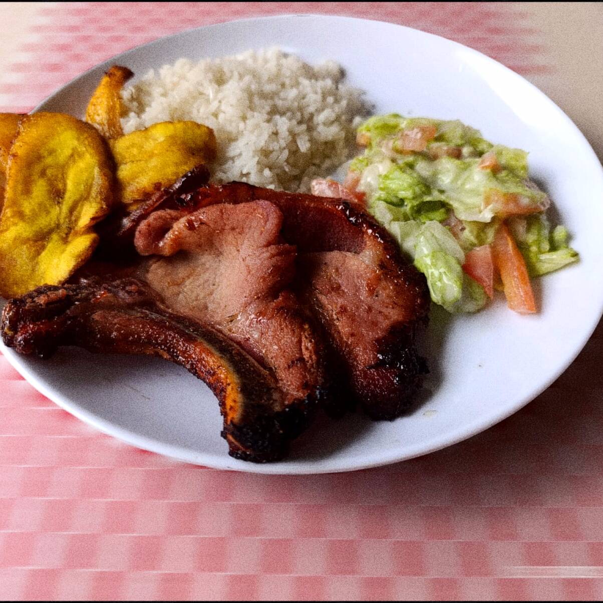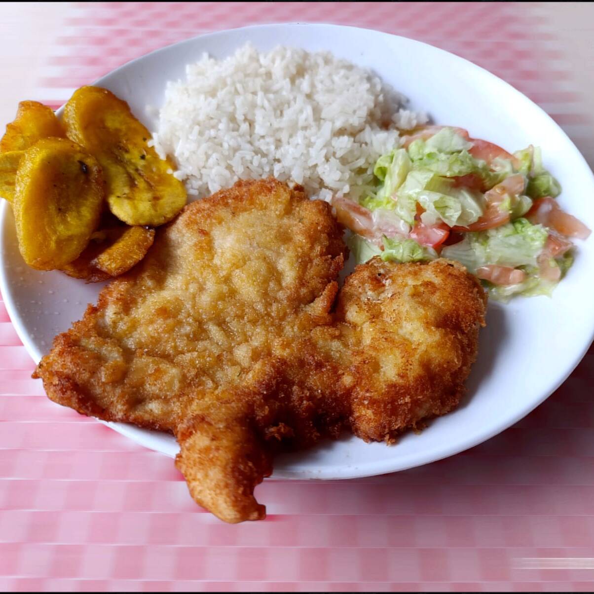 Acompañado de un delcioso arroz, tajadas y ensalada del dia