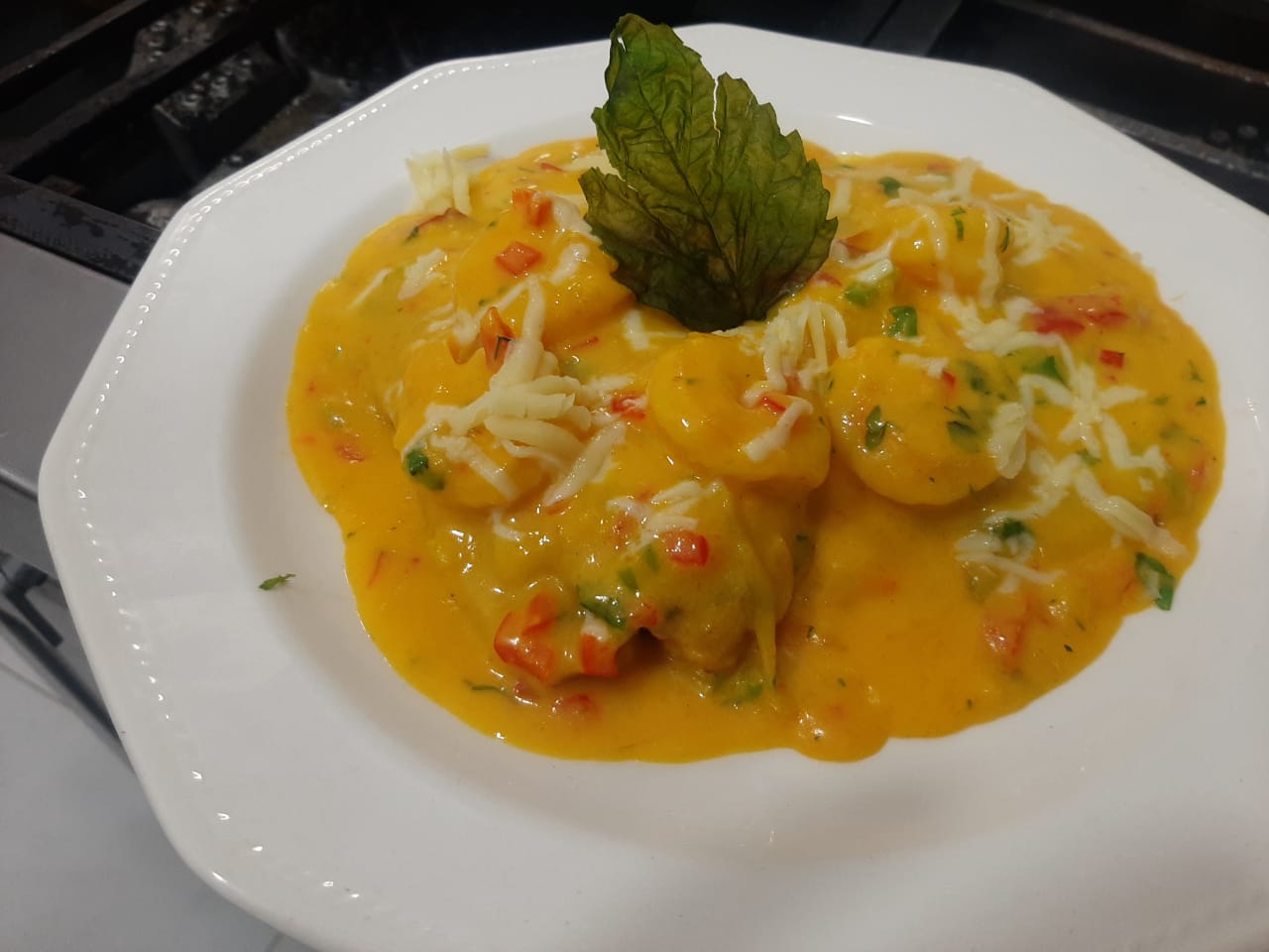plato tipico peruano (frutos del mar salteados en reduccion de aji panca)