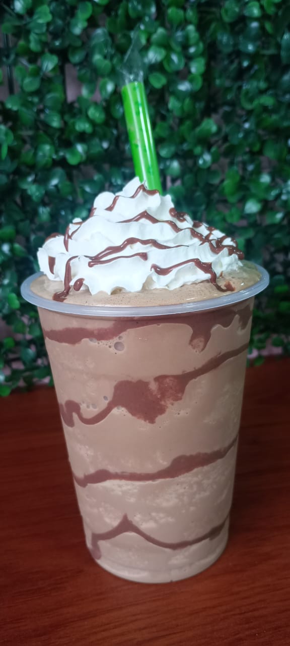 Frappé de 16 oz con crema chantilly y salsa de chocolate.