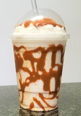 Malteada de 16 oz con crema chantilly y salsa de arequipe.