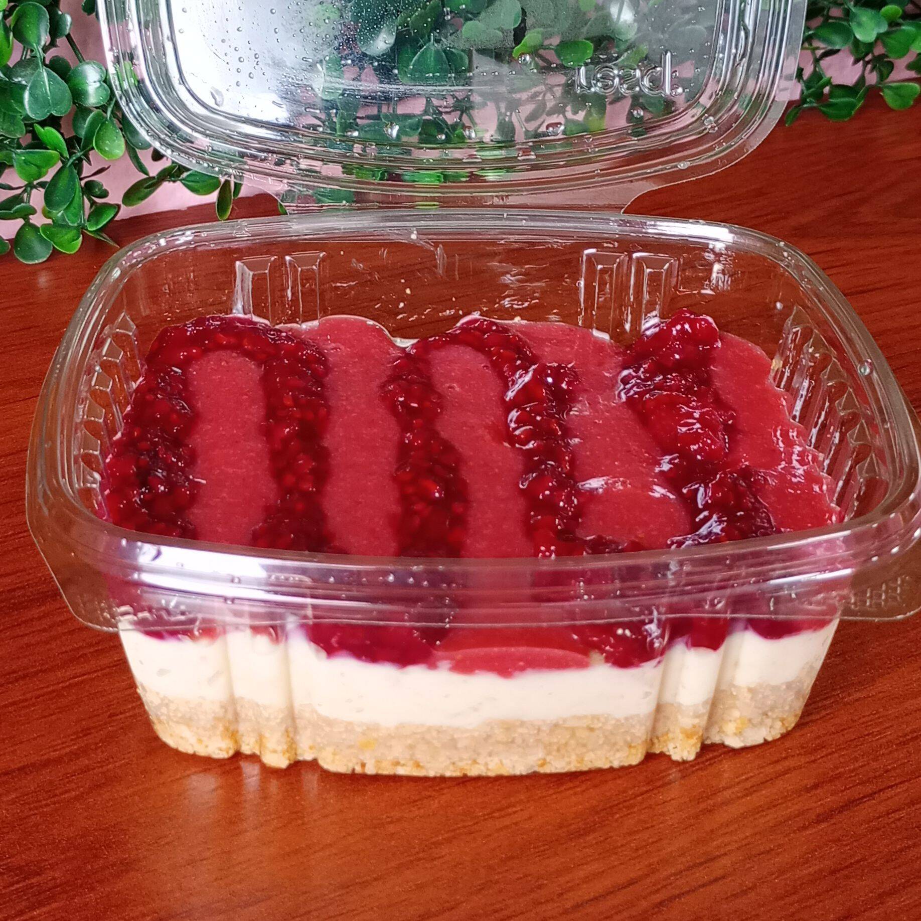 Base de galleta, crema de queso, crema dulce, salsa de fresa y mora artesanal.