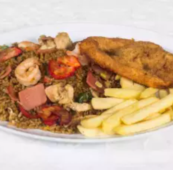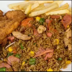 Arroz chino para dos a tres personas, con proteína a elección y papas a la francesa.NO TRAE CUBIERTOS