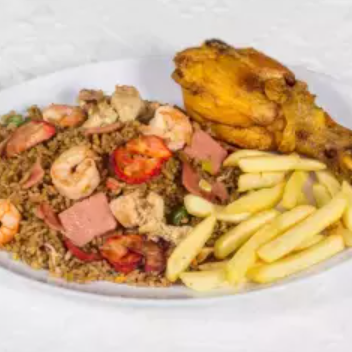 Arroz ranchero para dos a tres personas, con proteína a elección y papas a la francesa.NO TRAE CUBIERTOS