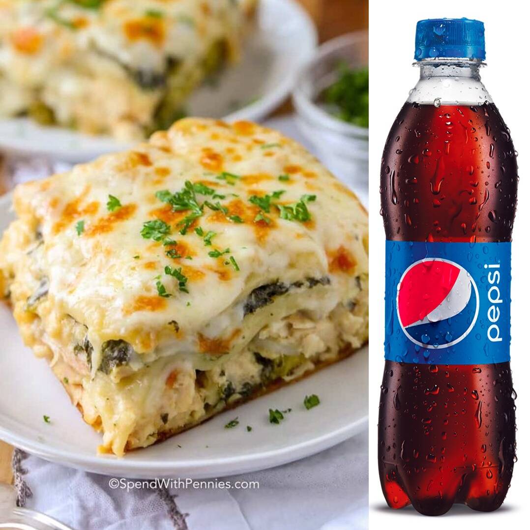 Lasagna de pollo acompañada de bedida 250ml postobon.